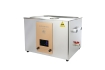 通過換能器,將功率超聲頻源的聲能轉換成機械振動,通過清洗槽壁將超聲波輻射到槽子中的清洗液。由于受到超聲波的輻射,槽內液體中的微氣泡能夠在聲波的作用下快速變大破裂,破裂時產生的高強度剪切力作用于各類樣品上,從而達到清洗、提取、乳化、加速溶解、粉碎、分散等作用。